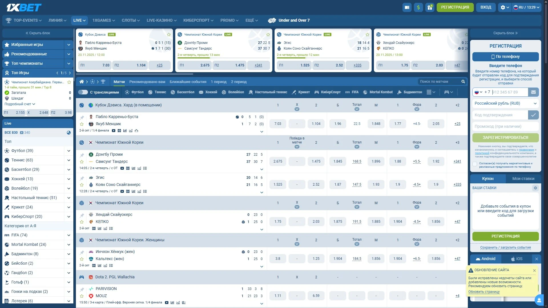 1xBet традиционно предлагает коэффициенты выше среднего по рынку, особенно на топовые турниры. Маржа варьируется в зависимости от вида спорта и популярности события, но в целом остаётся конкурентной. Для Live-режима котировки обновляются мгновенно, а интерфейс позволяет быстро добавлять события в купон.