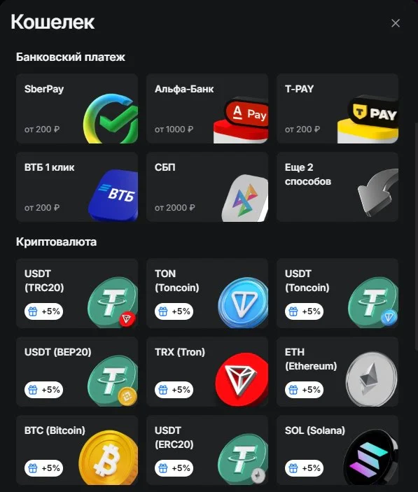 Площадка подходит игрокам из России, работает стабильно даже при блокировках, поддерживает моментальные транзакции и предлагает выгодные бонусы для новичков и активных пользователей.